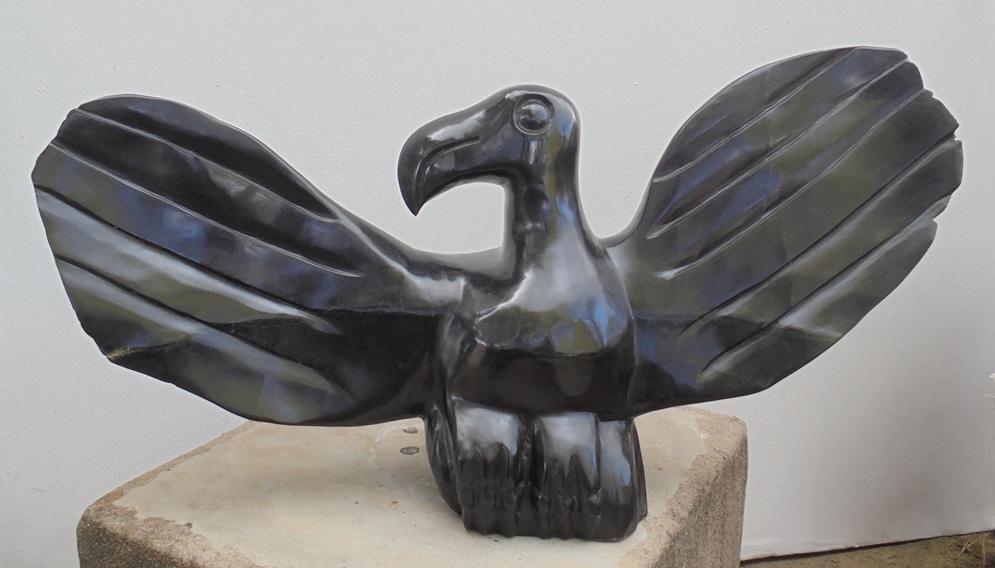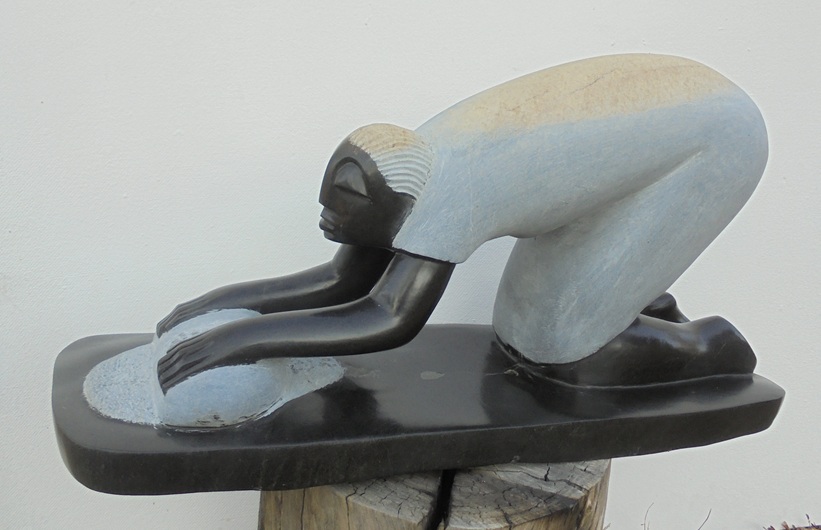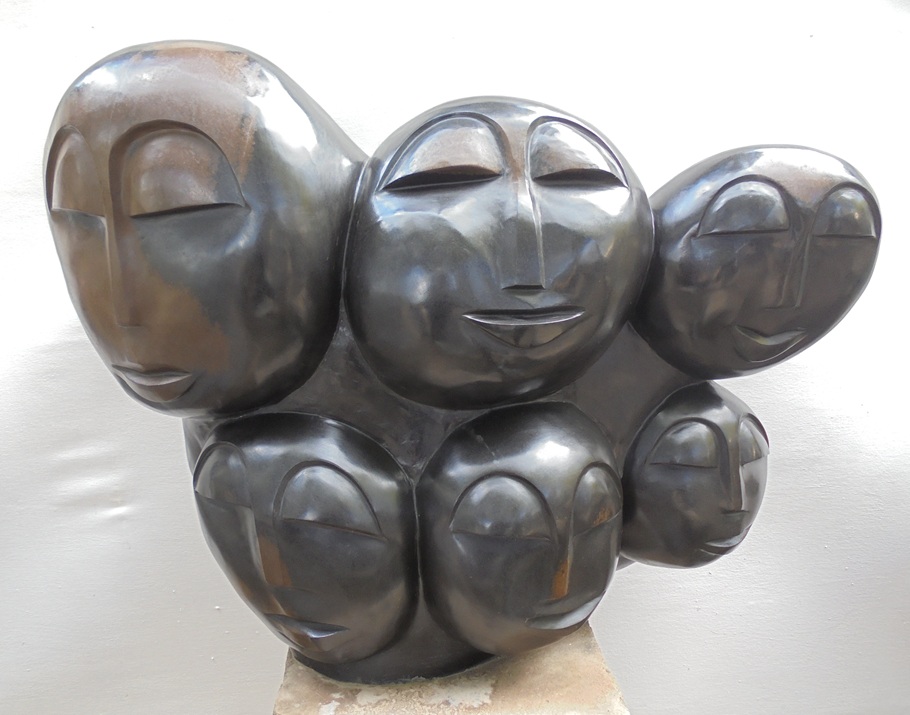 Fungayi was born in 1968 in Chimanimani and learned sculpting as an apprentice to the now late Joram Mariga, the “Father of Zimbabwean Stone Sculpture”. He works on hard stones and realizes possibilities for stone sculpture in the purple lepidiolite, the green verdite, the multi faceted leopard rock and the red granite, called red jasper. His subject matter is often animals like frogs, chameleons, birds and reptiles; or taken from tradition, like “Woman Possessed by Rhino Spirit”. Fungayi Mwarowa has a great pedagogical talent, besides the artist’s; which he recently proved through a 6 weeks’ visit to as many schools in Europe, where he taught teenagers to make sculptures out of stones. In this way he personalized the very concept of Friends Forever – the direct connection between African professional artists and any audience in Europe and the Western World at large.