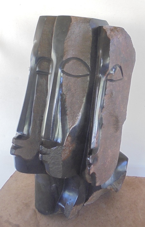 Justice Babama is Samson Babama’s brother and a cousin of Lawrence Mukomberanwa, who introduced him to Friends Forever in July 2019. This large family has fostered so many great talents in stone sculpting, and Justice Babama is no exception. WIth his own distinctive style, he often creates very large sculptures in Granite, as well as inventive figures in the traditional Springstone. ” Mother Holding a Baby” is a statue, in something like ancient or antique style; at the same time the expression of motherly love and care is outspoken, as well as the baby’s longing for closeness. |